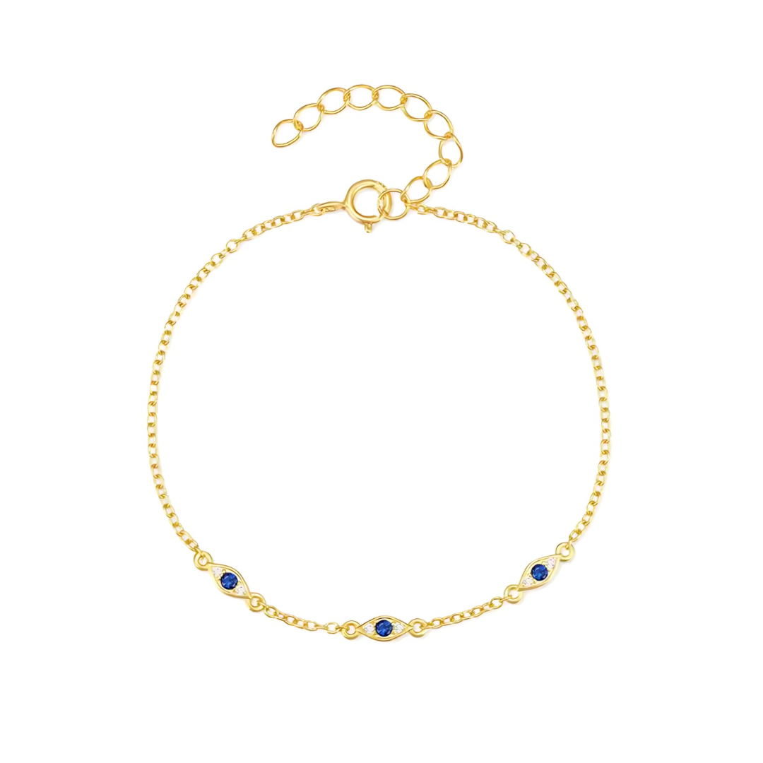 This elegant bracelet featuring three evil eyes makes a charming and subtle enhancement to your collection of stacked bracelets.