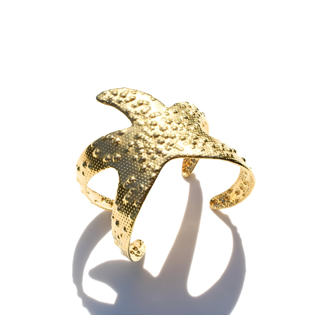 A sculptural starfish cuff crafted in a radiant gold-tone finish with rich textured detailing. Bold, artistic, and effortlessly luxurious — designed to elevate any resort, summer, or statement look.