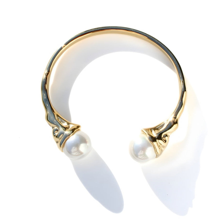 Discover the perfect addition to your collection with this Heart of Pearl Cuff. This stunning piece embodies the spirit of the sea, featuring a mermaid-inspired design and delicate freshwater pearls at each end. You'll be enchanted by its beauty and meaning.