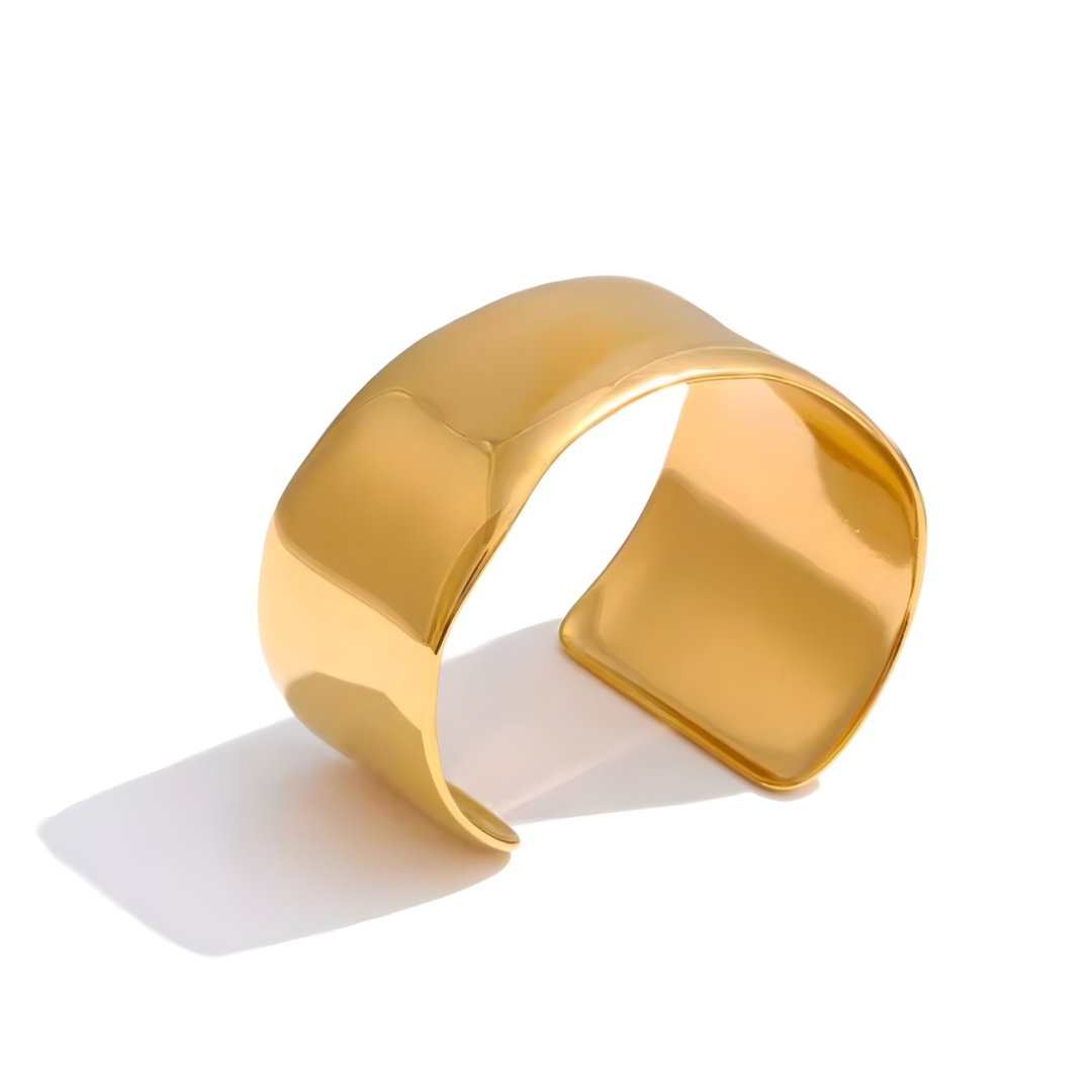 Elevate your look with the Radiant Monarch Cuff — a bold, sculpted gold piece that adds instant elegance and modern luxury to any outfit. Its fluid, high-shine design makes it the perfect statement accessory for day or night.