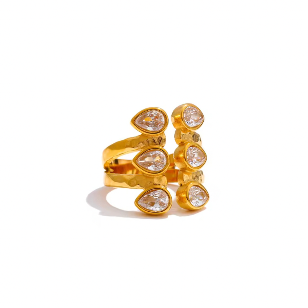 Elevate your style with this radiant stacked ring designed to mimic the look of layered bands, it delivers effortless brilliance and a bold, sculptural silhouette. A standout piece that adds instant glamour to any look.