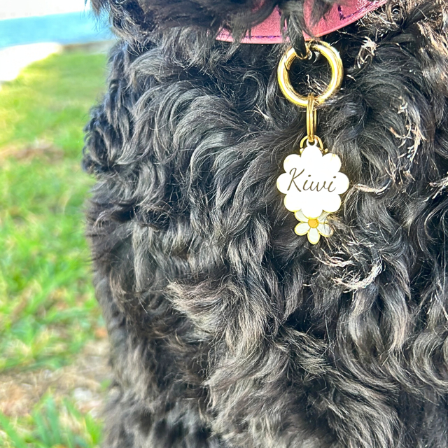 Personalize this flower charm with your pet’s name and start building their charm collection. Add clip-on charms anytime to show off their unique personality. Allow two business days for shipping.