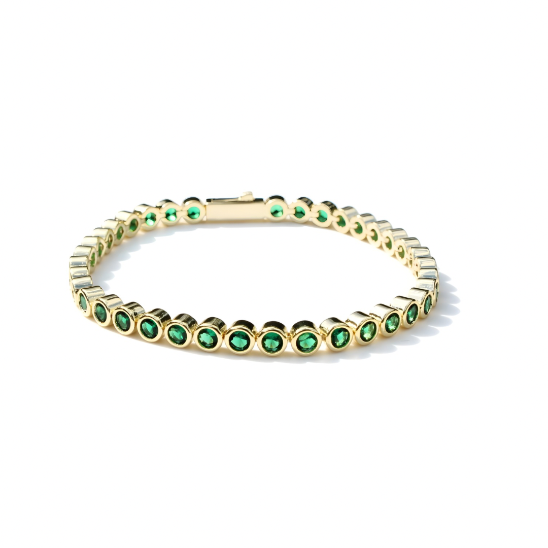 This radiant green tennis bracelet elevates every look with timeless elegance and brilliant sparkle, perfect for any occasion from casual to formal wear.