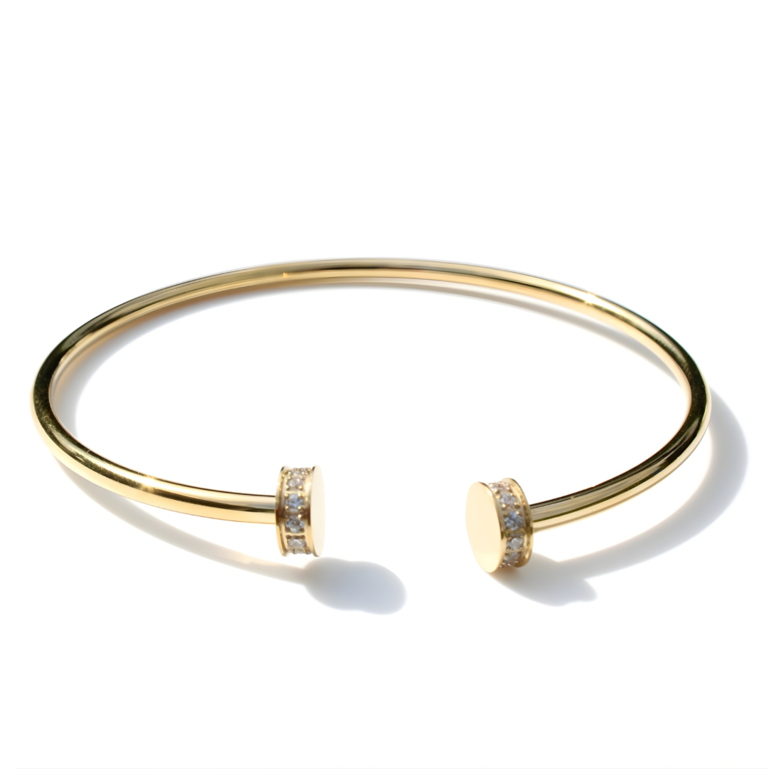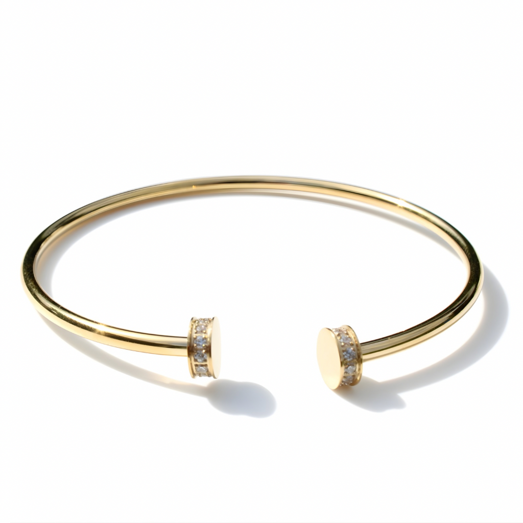 Elevate your wrist with this sophisticated cuff bracelet, where minimalist design meets dazzling brilliance. Gleaming white zirconia accents frame each end, adding an instant touch of refined elegance to any ensemble.
