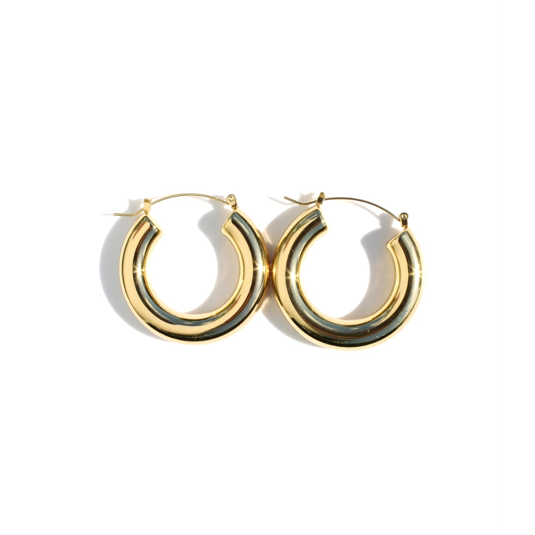 Polished gold-tone hoop earrings with a bold, smooth design.