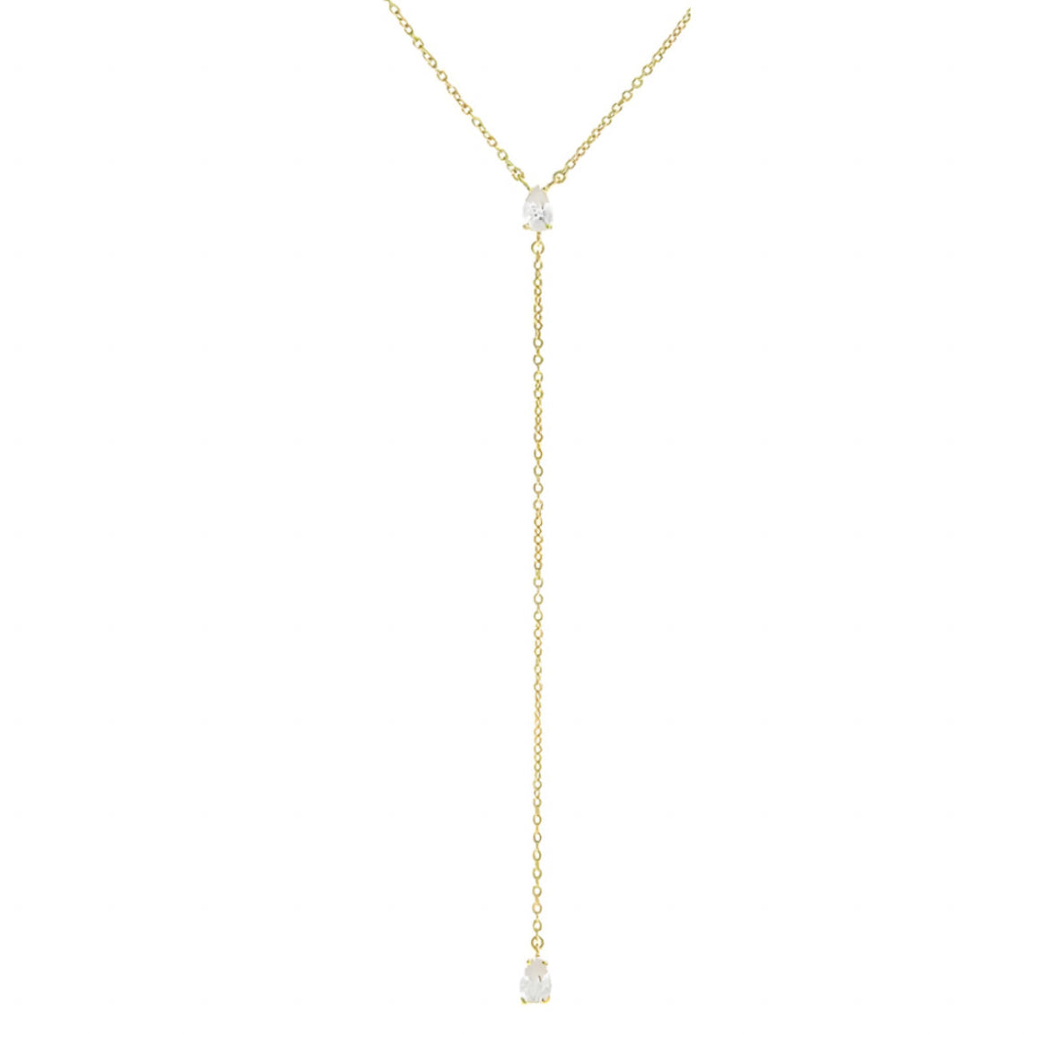 A sophisticated and delicate lariat necklace with stunning white crystals.