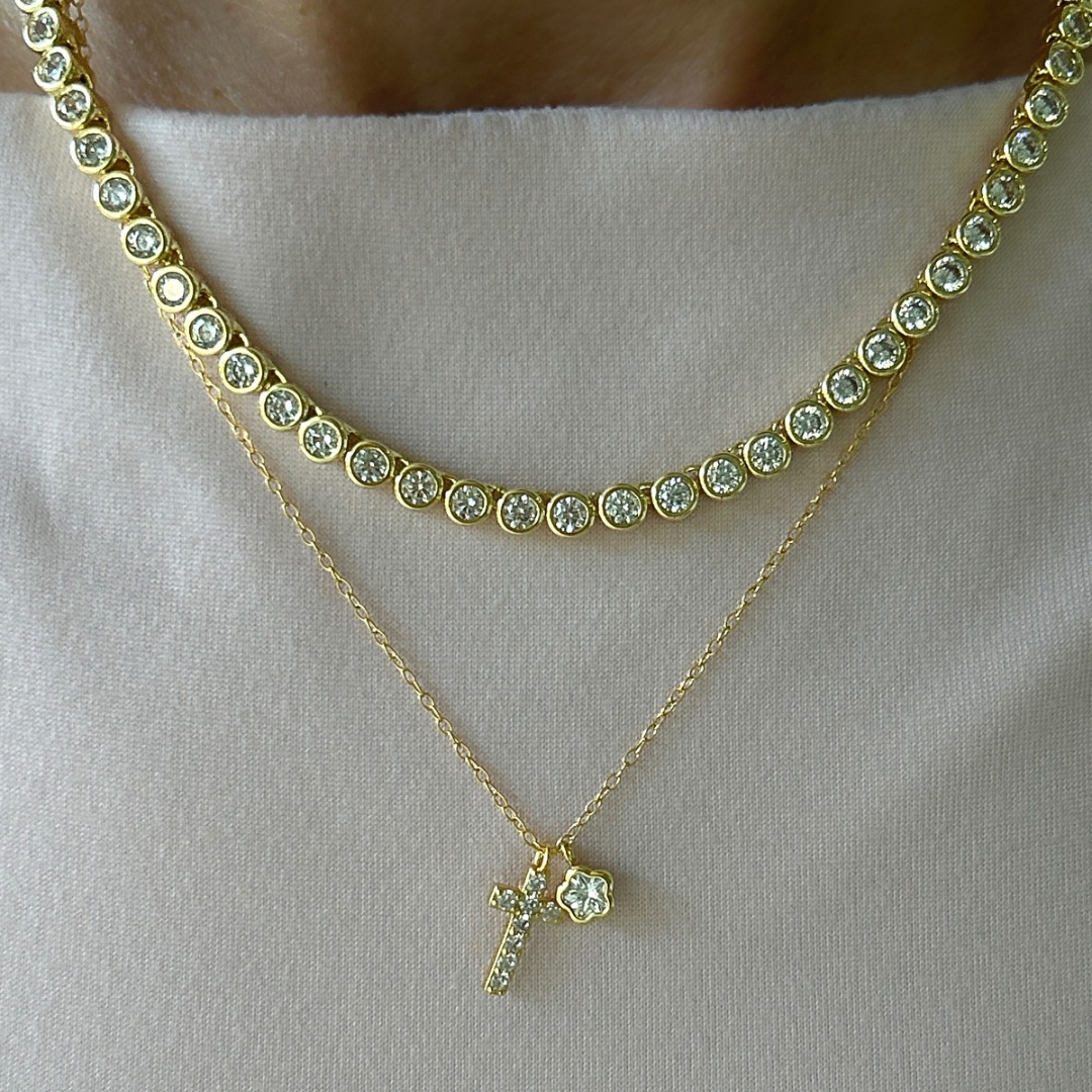 This white tennis necklace elevates every look with timeless elegance and brilliant sparkle, perfect for any occasion from casual to formal wear.