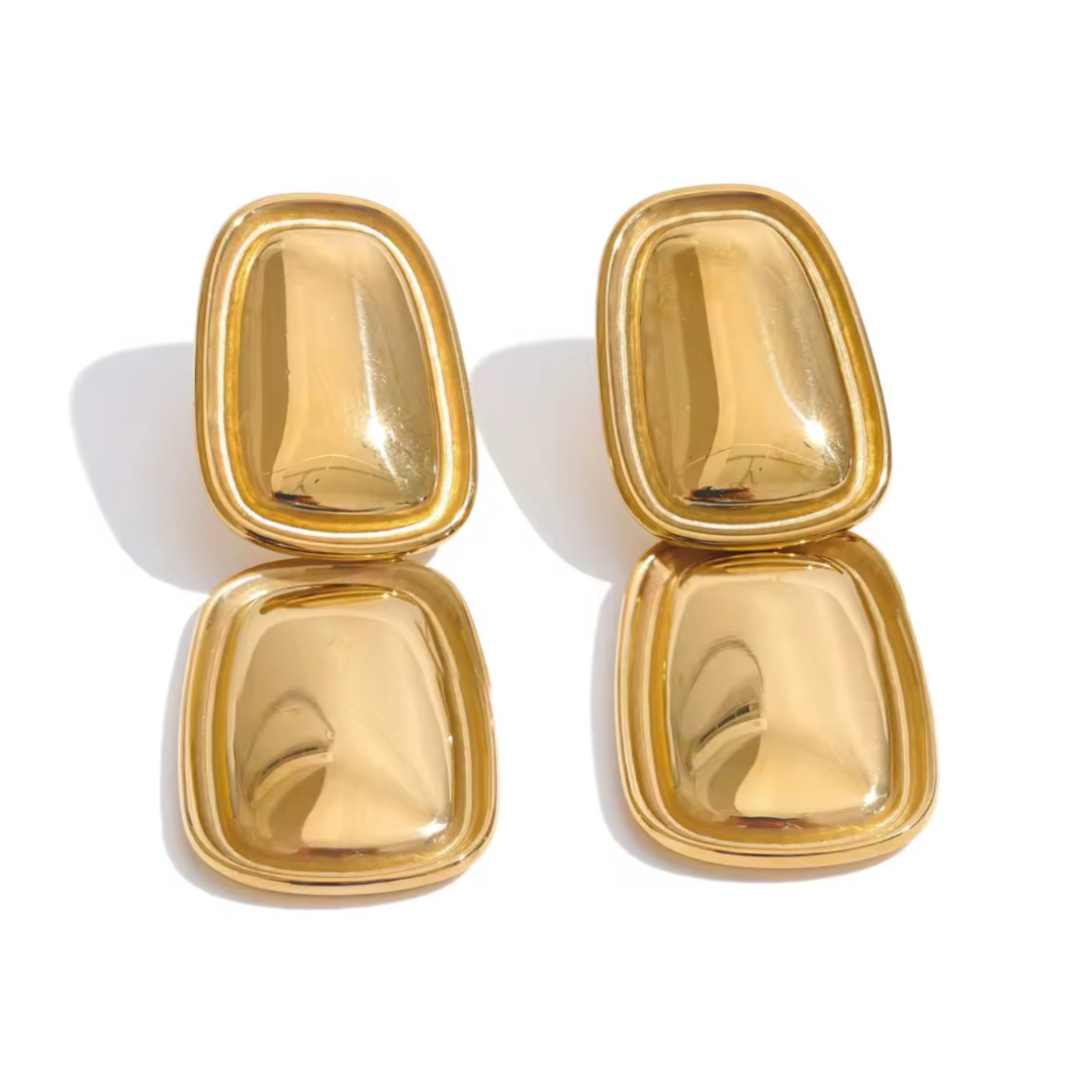 Modern shape. Bold impact. Sleek sculpted gold drop earrings with a high-polish finish. Designed to make a bold yet refined statement, perfect for elevating any outfit.