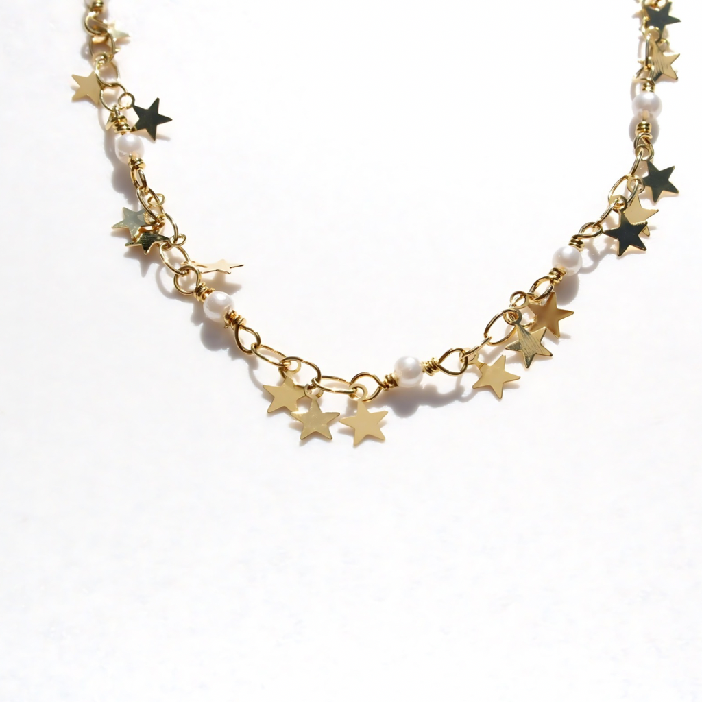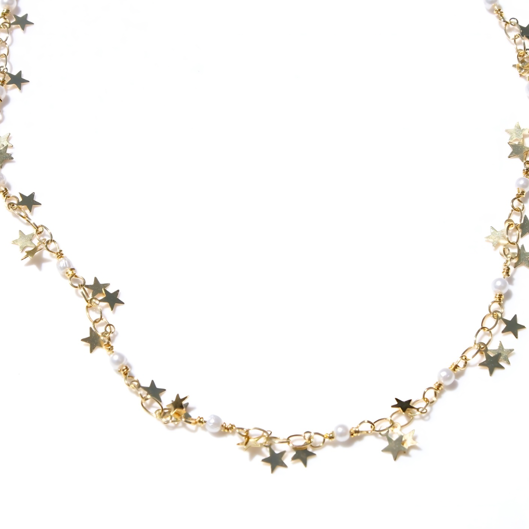 Transform your ensemble day or night with this intricately designed star and pearl necklace - the perfect addition to your jewelry collection. Suitable for layering and ready to take your style to the next level.