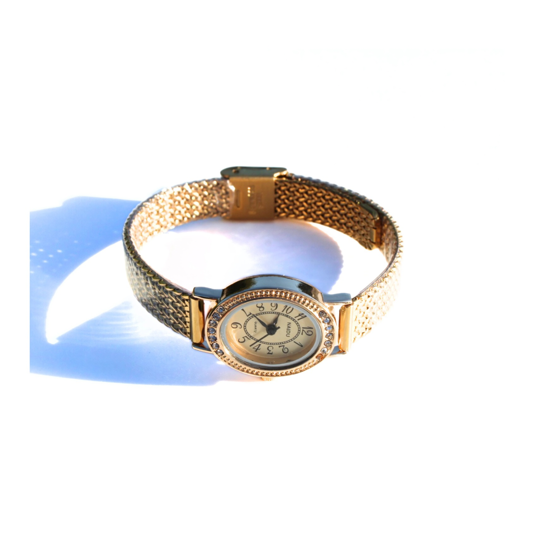 This gold-toned stainless-steel watch captures a classic vintage style, blending timeless elegance with durable craftsmanship.