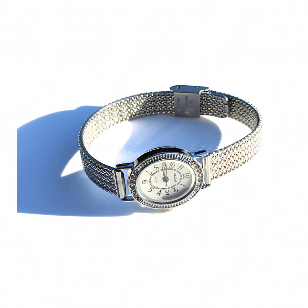This silver-toned stainless-steel watch captures a classic vintage style, blending timeless elegance with durable craftsmanship.
